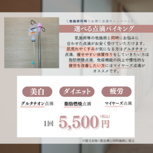 お悩みに合わせて選べる3種類の点滴が5,500円で受けていただけます。